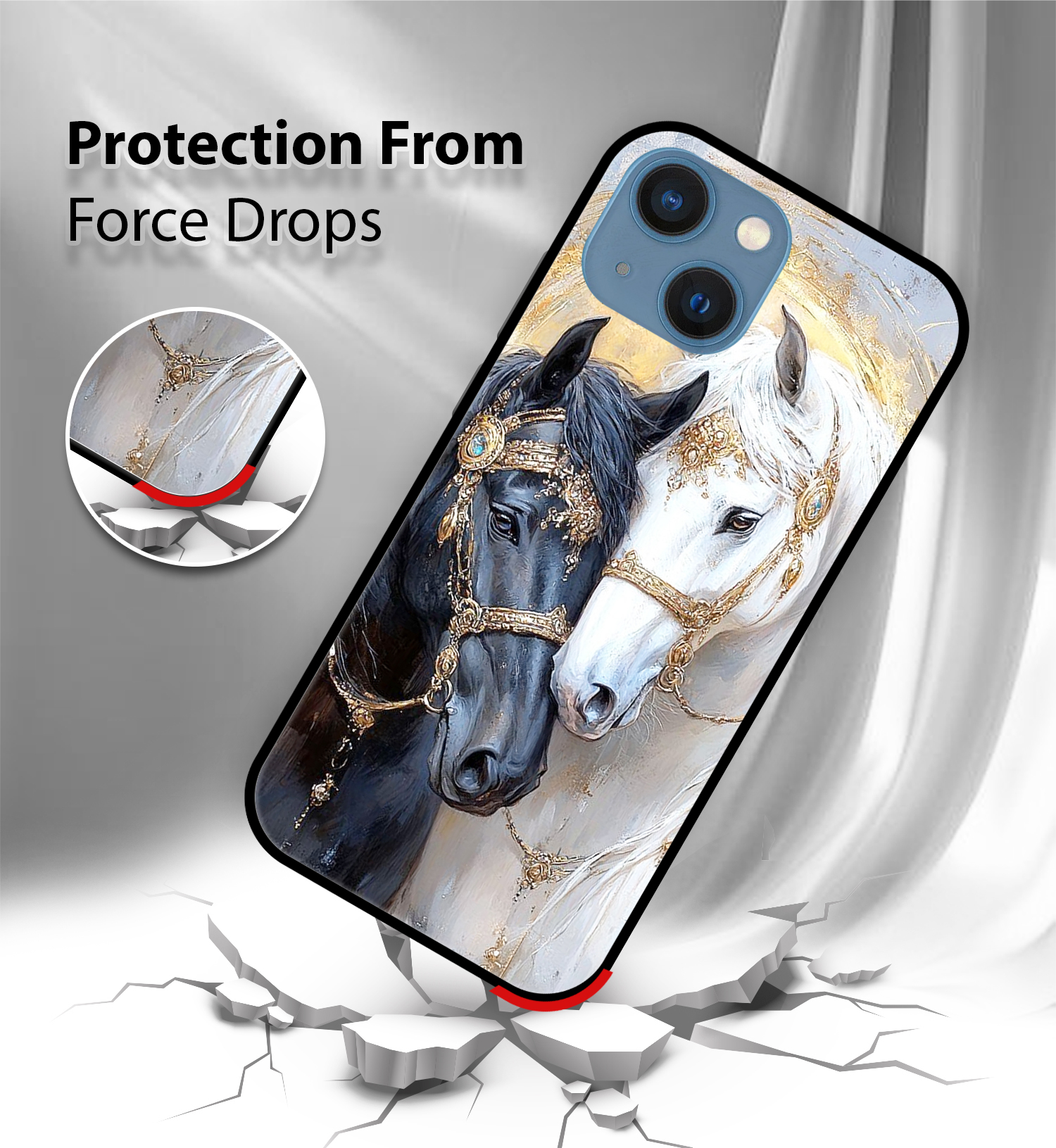Upgrade your iPhone 13 with the Premium Black & White Horse Printed Back Cover, designed to deliver the perfect Tiger Design of style, protection, and comfort. Crafted from high-quality, durable materials, this case protects your phone from everyday drops, scratches, and impacts while maintaining a slim and lightweight feel.