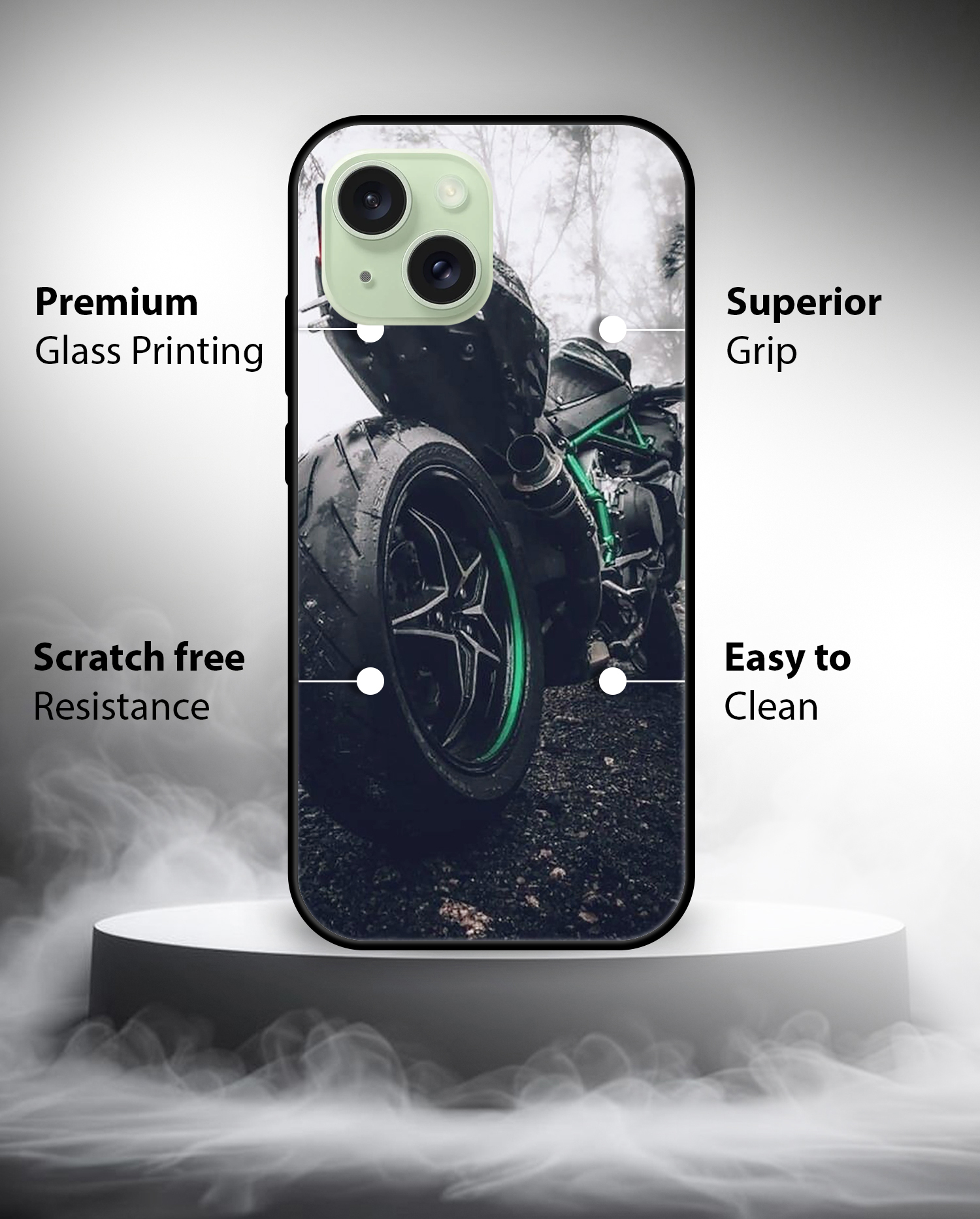 Upgrade your iPhone 15 with the Premium Bike Lover Printed Back Cover, designed to deliver the perfect balance of style, protection, and comfort. Crafted from high-quality, durable materials, this case protects your phone from everyday drops, scratches, and impacts while maintaining a slim and lightweight feel.