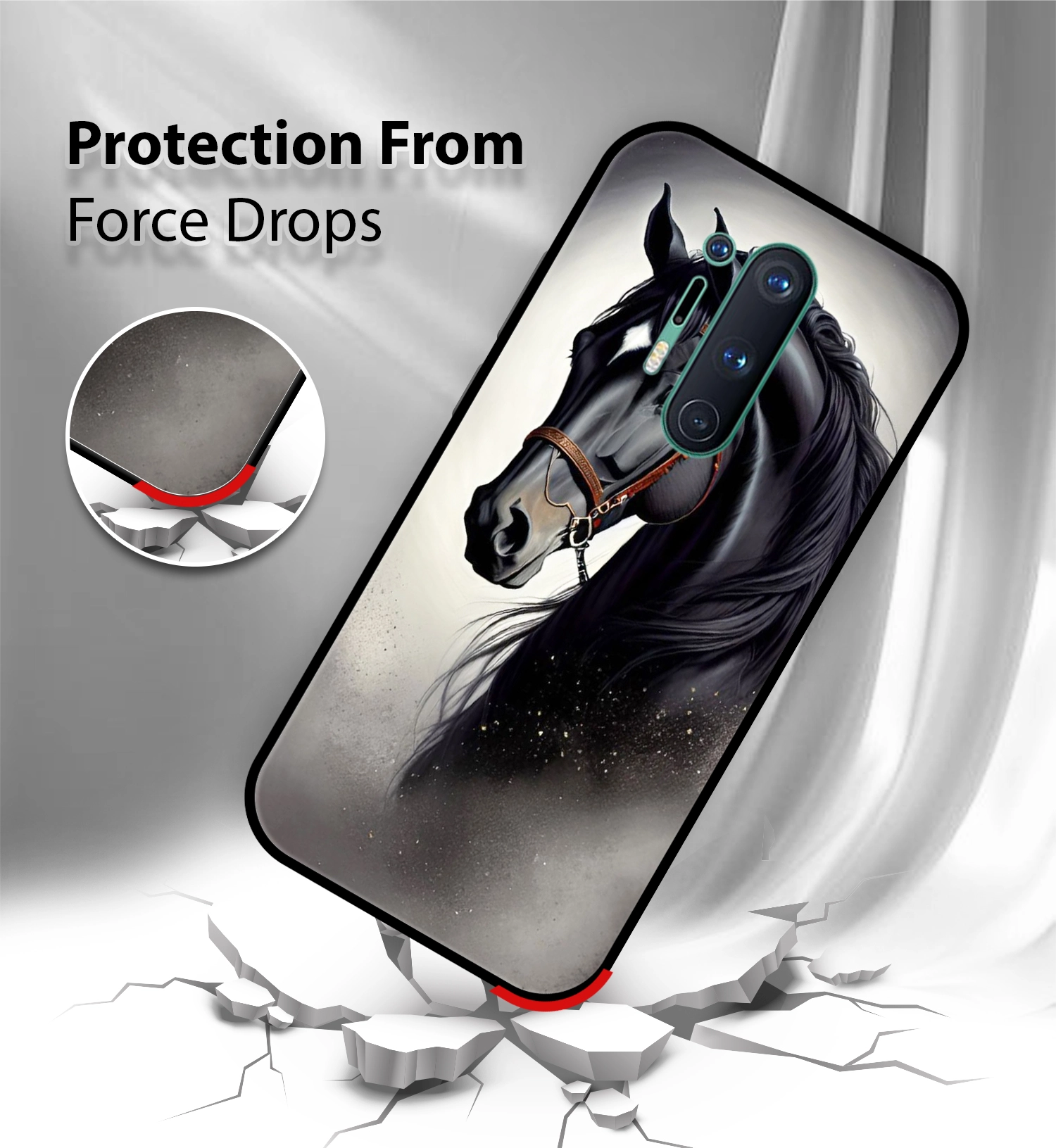 Upgrade your Oneplus 8 pro with the Premium Black Horse Printed Back Cover, designed to deliver the perfect Tiger Design of style, protection, and comfort. Crafted from high-quality, durable materials, this case protects your phone from everyday drops, scratches, and impacts while maintaining a slim and lightweight feel.