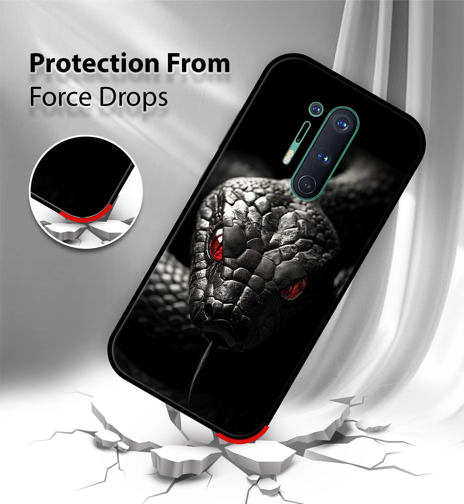 Upgrade your Oneplus 8 pro with the Premium Deadly Snake Printed Back Cover, designed to deliver the perfect Tiger Design of style, protection, and comfort. Crafted from high-quality, durable materials, this case protects your phone from everyday drops, scratches, and impacts while maintaining a slim and lightweight feel.
