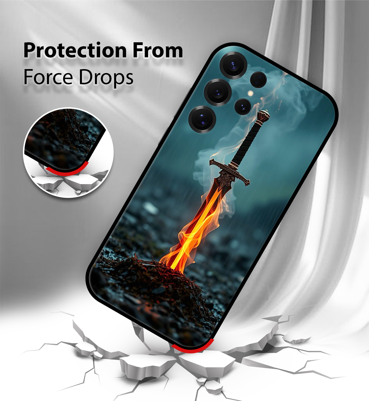 Upgrade your Samsung S25 Ultra with the Premium Flaming Sword Printed Back Cover, designed to deliver the perfect balance of style, protection, and comfort. Crafted from high-quality, durable materials, this case protects your phone from everyday drops, scratches, and impacts while maintaining a slim and lightweight feel.