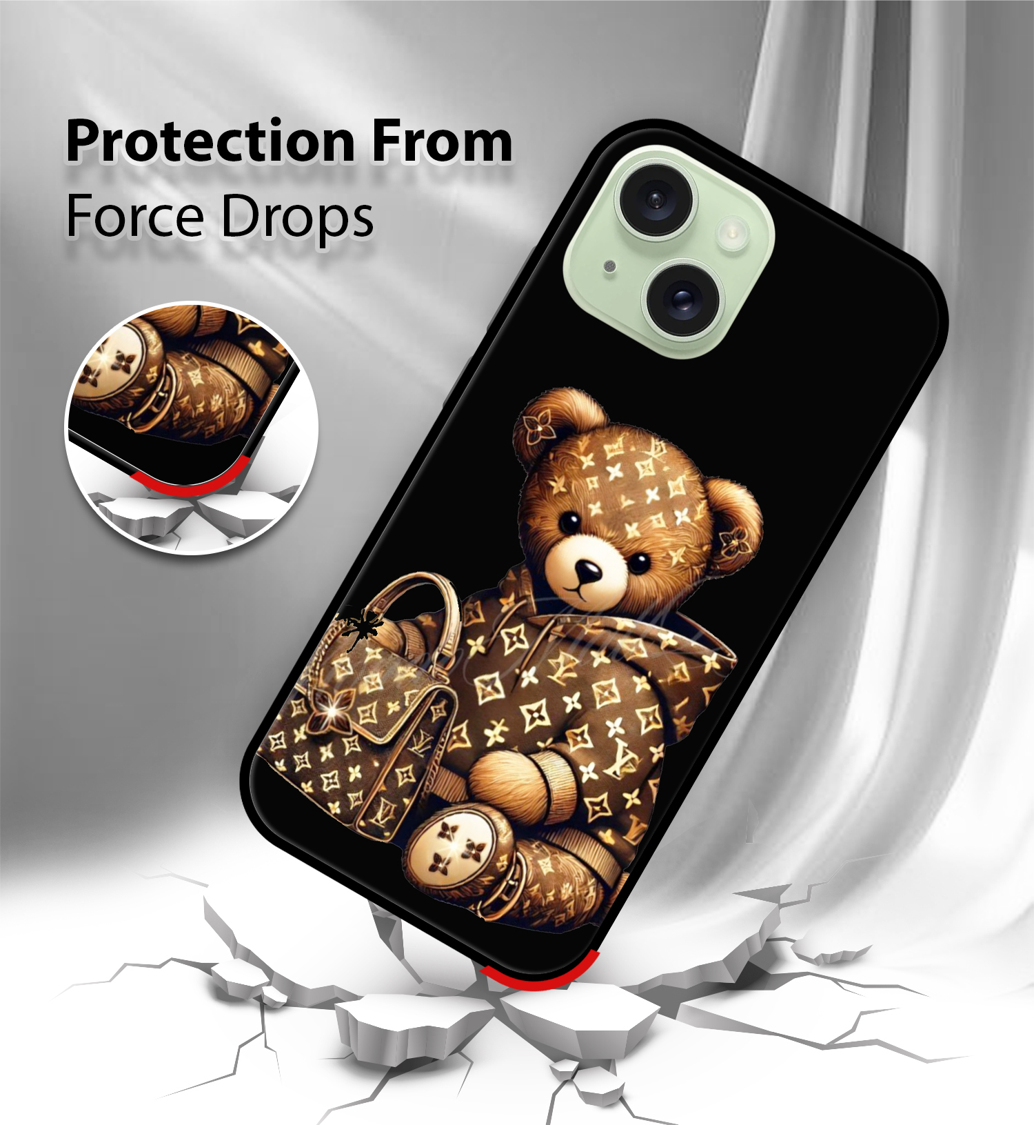 Upgrade your iPhone 15 with the Premium luxury Teddy Bear Printed Back Cover, designed to deliver the perfect Tiger Design of style, protection, and comfort. Crafted from high-quality, durable materials, this case protects your phone from everyday drops, scratches, and impacts while maintaining a slim and lightweight feel.