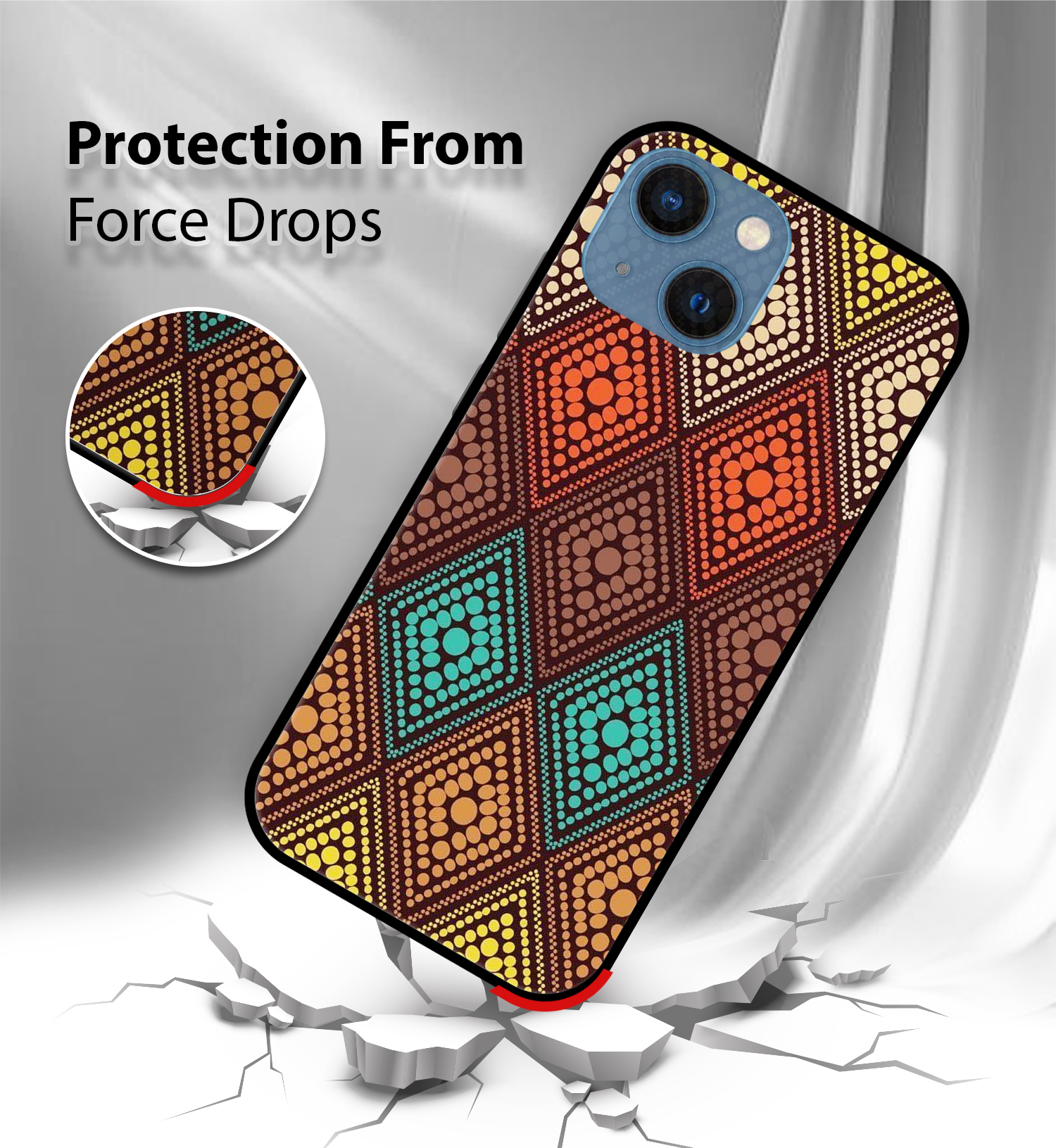 Upgrade your iPhone 13 with the Premium Multi Diamond Pattern Printed Back Cover, designed to deliver the perfect Tiger Design of style, protection, and comfort. Crafted from high-quality, durable materials, this case protects your phone from everyday drops, scratches, and impacts while maintaining a slim and lightweight feel.