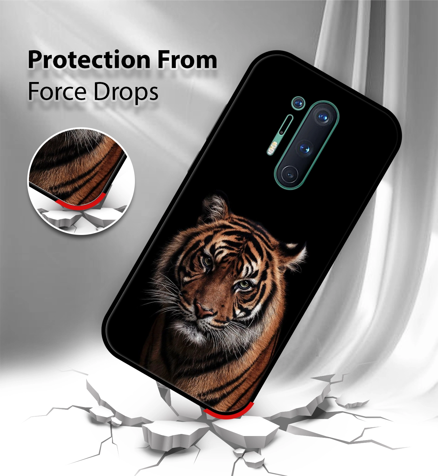 Upgrade your Oneplus 8 pro with the Premium Tiger Design Printed Back Cover, designed to deliver the perfect Tiger Design of style, protection, and comfort. Crafted from high-quality, durable materials, this case protects your phone from everyday drops, scratches, and impacts while maintaining a slim and lightweight feel.