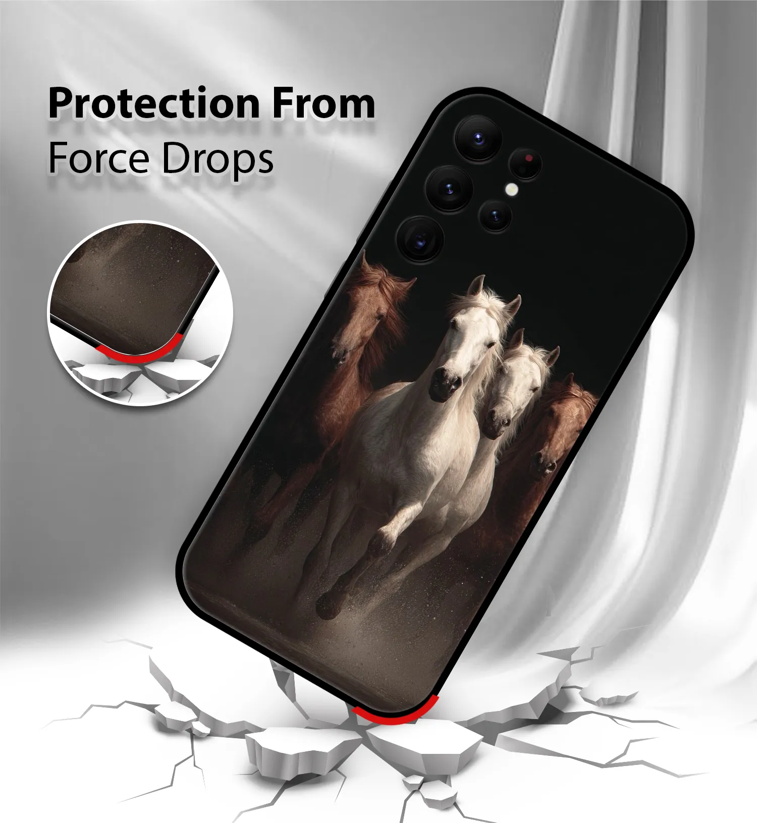 Upgrade your Samsung S22 with the Premium Wild Running Horses Printed Back Cover, designed to deliver the perfect Tiger Design of style, protection, and comfort. Crafted from high-quality, durable materials, this case protects your phone from everyday drops, scratches, and impacts while maintaining a slim and lightweight feel.