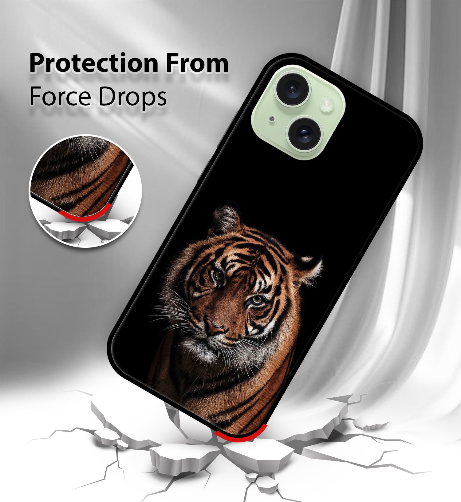 Upgrade your iPhone 15 with the Premium Tiger Design Printed Back Cover, designed to deliver the perfect Tiger Design of style, protection, and comfort. Crafted from high-quality, durable materials, this case protects your phone from everyday drops, scratches, and impacts while maintaining a slim and lightweight feel.